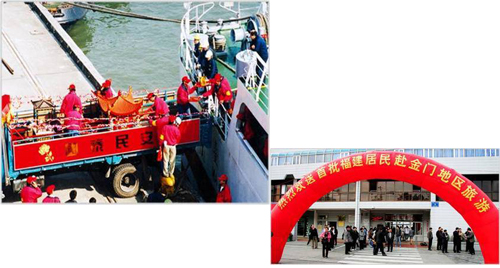 En enero de 2001, se ha materializado entre el litoral de Fujian y Jinmen y Mazu el contacto directo, que se convirti帙 en una v岥a f芍cil para los intercambios a trav岢s del estrecho. Sin embargo, el radio de personal empleado y las categor岥as de mercanc岥as sufren de restricciones impuestas por las autoridades de Taiw芍n.