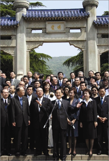 Lian Chan, a la cabeza de la delegaci帙n, rindiendo homenaje a la tumba de Sun Yat-sen