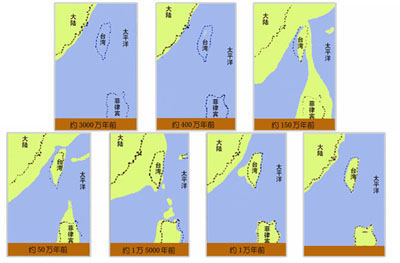 En la remota antig徂edad, Taiw芍n y la parte continental fueron unidos. M芍s tarde, debido a los movimientos cortinales, la parte de conexi帙n se hundi帙 al mar y se convirti帙 en un estrecho, as岥 se form帙 la isla de Taiw芍n.
