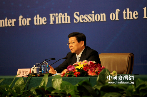 中國臺灣網3月7日北京消息 3月7日上午10點,十一屆全國人大五次會議在梅地亞“兩會”新聞中心舉行記者會,商務部部長陳德銘就“擴消費促流通和發展對外經貿”的相關問題回答中外記者的提問。 (記者劉洋、特約記者張魏波)