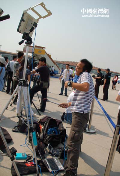 你拍我也拍。隨機抵京的臺灣記者鏡頭轉向了媒體同行。(張弛 攝)