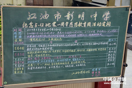 5.12地震一周年之際,彰明中學有計劃的開展感恩教育活動。(中國臺灣網 鐘寶華 攝) |