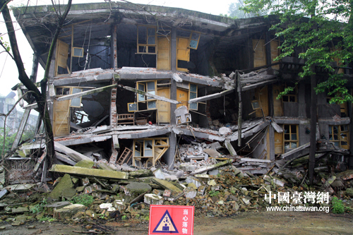 被地震摧毀的職工宿舍樓。(中國臺灣網 田雲鵬 攝)