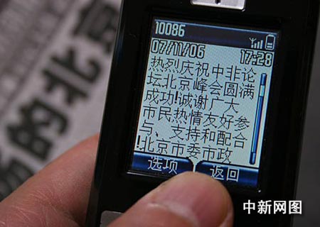 在中非合作論壇北京峰會圓滿結束後,北京市官方十一月七日以短信方式感謝全體市民的熱情友好參與和配合。北京市政府官員表示,中非論壇是市民參與城市管理,共同努力緩解和解決北京在大型活動期間交通等諸多問題的成功典范。 (來源:中國新聞網)