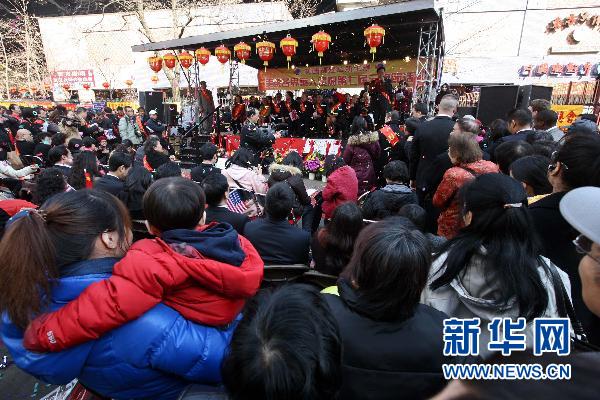 2月17日,在美國紐約曼哈頓華埠,來賓與觀眾參加元宵節慶祝活動。當天,美國福建公所在紐約曼哈頓華埠舉辦第七屆元宵節活動,讓海外華人在元宵佳節里也能感受到家鄉的溫暖。 新華社記者朱煒攝