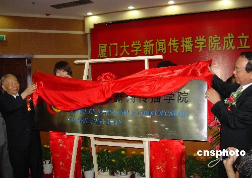 1922年7月,陳嘉庚先生在廈大開辦新聞教育,建立了“中國人自己創辦的第一個新聞學科”;1983年,廈門大學重新復辦新聞學科,成立了在中國高等院校新聞院係中第一個以“傳播”冠名的新聞傳播係;如今,廈門大學的新聞教育又邁上了新臺階。昨日上午,廈門大學新聞傳播學院正式成立,全國政協副主席張克輝,國臺辦副主任孫亞夫,福建省政協副主席葉家松,廈門市政協主席陳修茂,廈門大學領導朱之文、朱崇實在成立慶典上共同為廈大新聞傳播學院揭牌。